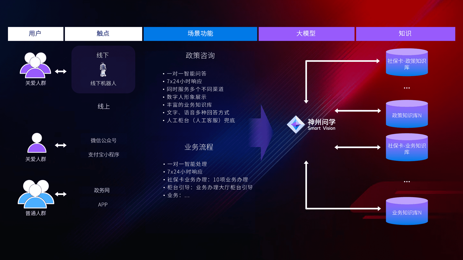 • 线上线下全覆盖:线上提供微信公众号、、支付宝小程序、、、、政务网、、、app多种渠道,,与线下机器人形成完整服务体系。。。